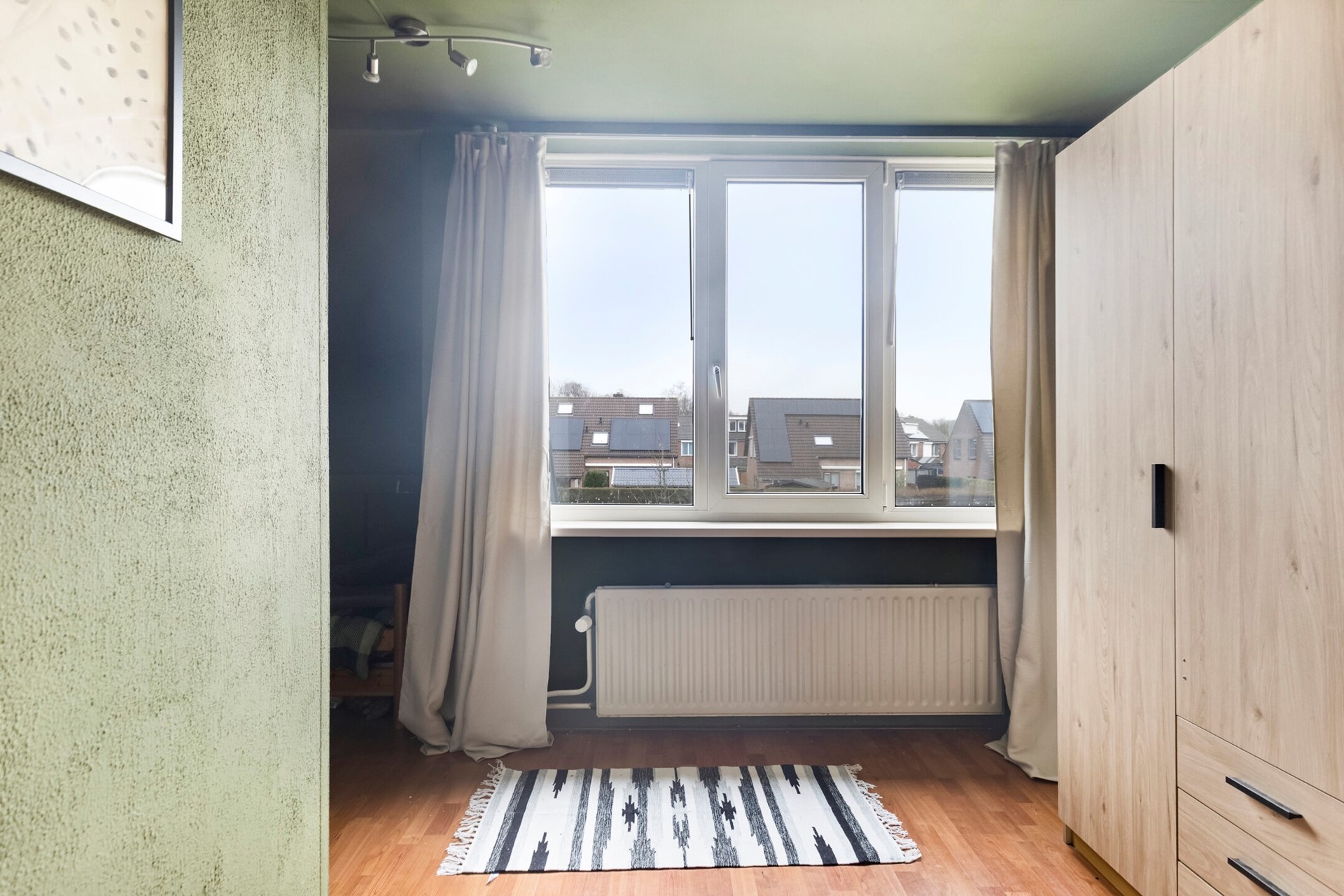 Duurzaamheid en installaties – Dak vernieuwd in 2022 (voormalige asbestdakbedekking verwijderd) – 10 zonnepanelen – Energielabel D (geldig tot 2031) – Intergas HRE A CW5 cv-ketel (huur) – Huurbedrag cv-ketel: € 49,20 per maand inclusief onderhoud en service – Vaste trap naar zolder – Rolluiken aanwezig